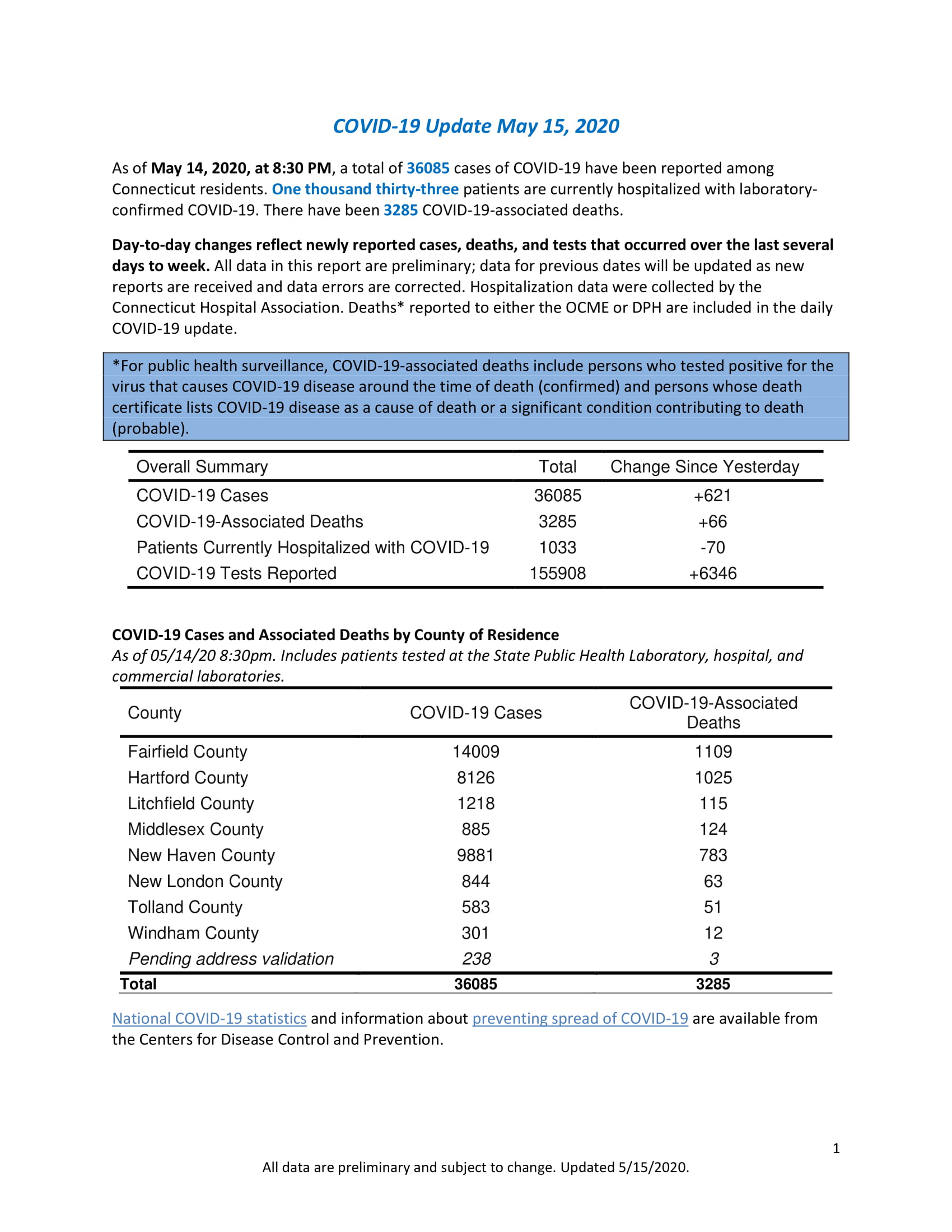 Governor Ned Lamont On Twitter Update Daily Covid 19 Data In Connecticut 36 085 People Tested Positive 621 3 285 People Have Died 66 1 033 Patients Are Currently Hospitalized 70 155 908